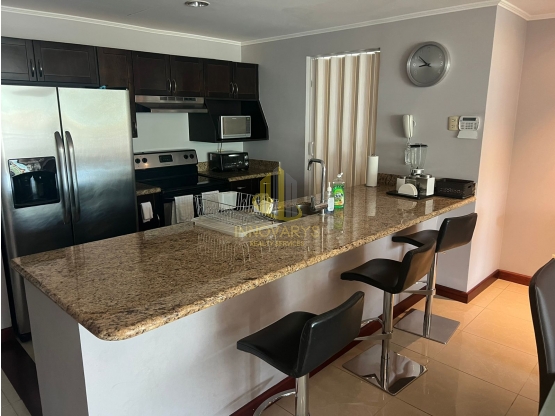 Dólares AmericanosLindo apartamento amueblado en Escazú, en zona muy céntrica y de fáciles accesos. El apartamento se ubica en un segundo piso. Cuenta con cocina totalmente equipada, con todos los electrodomésticos y utensilios de cocina, desayunador con bancos, cuarto de pilas con lavadora y secadora. Sala comedor con lindos muebles, un balcón con linda vista.